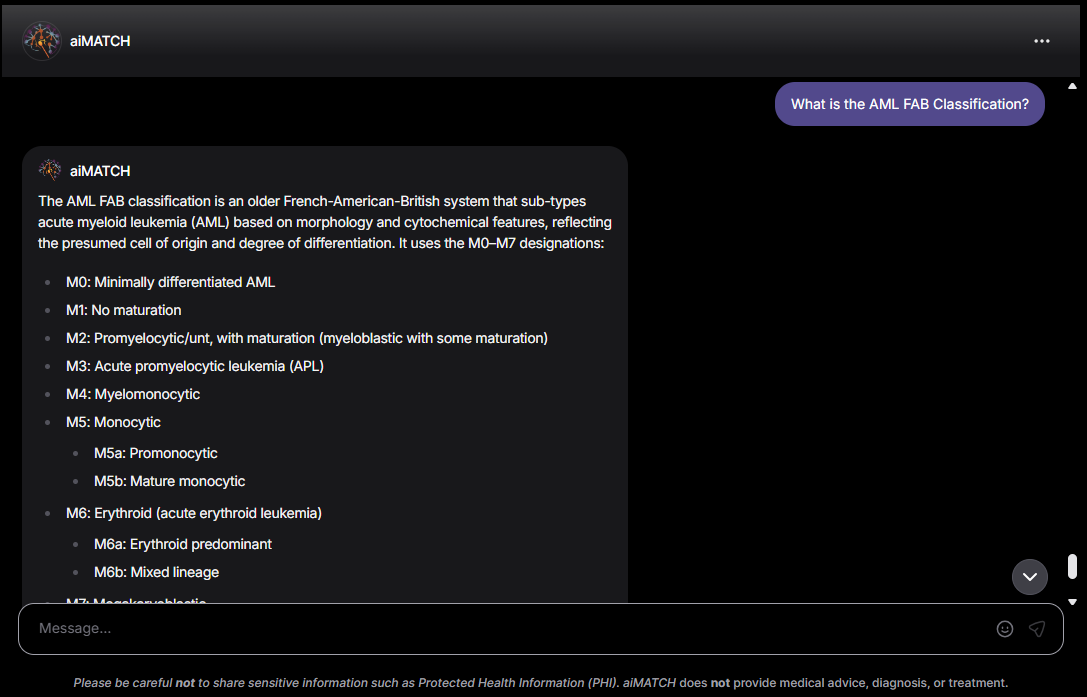 Use the specialized aiMATCH Chatbot developed for this challenge for questions about the dataset features, developing a modeling plan, and more.
